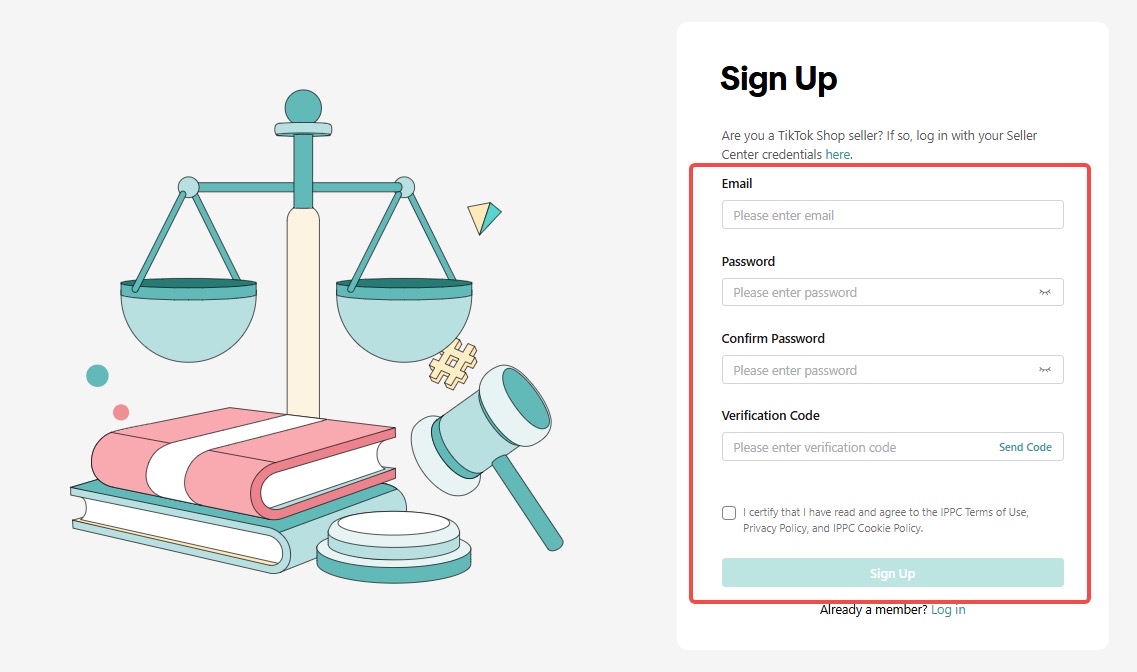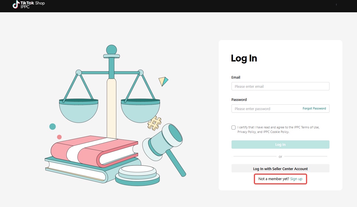 如果您还没有TikTok Shop商家账号,请直接点击“注册”创建TikTok Shop的IPPC账号。