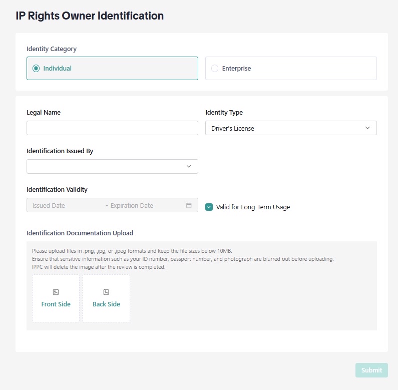 ❗虽然您可以通过IPPC注册外观设计,但不能通过IPPC提交外观设计侵权投诉,需通过此网页表单提交。