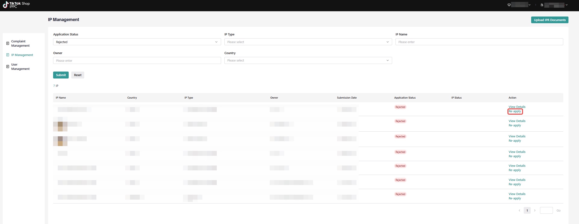 IP资产注册申请获批后,您可以提交IP侵权投诉。