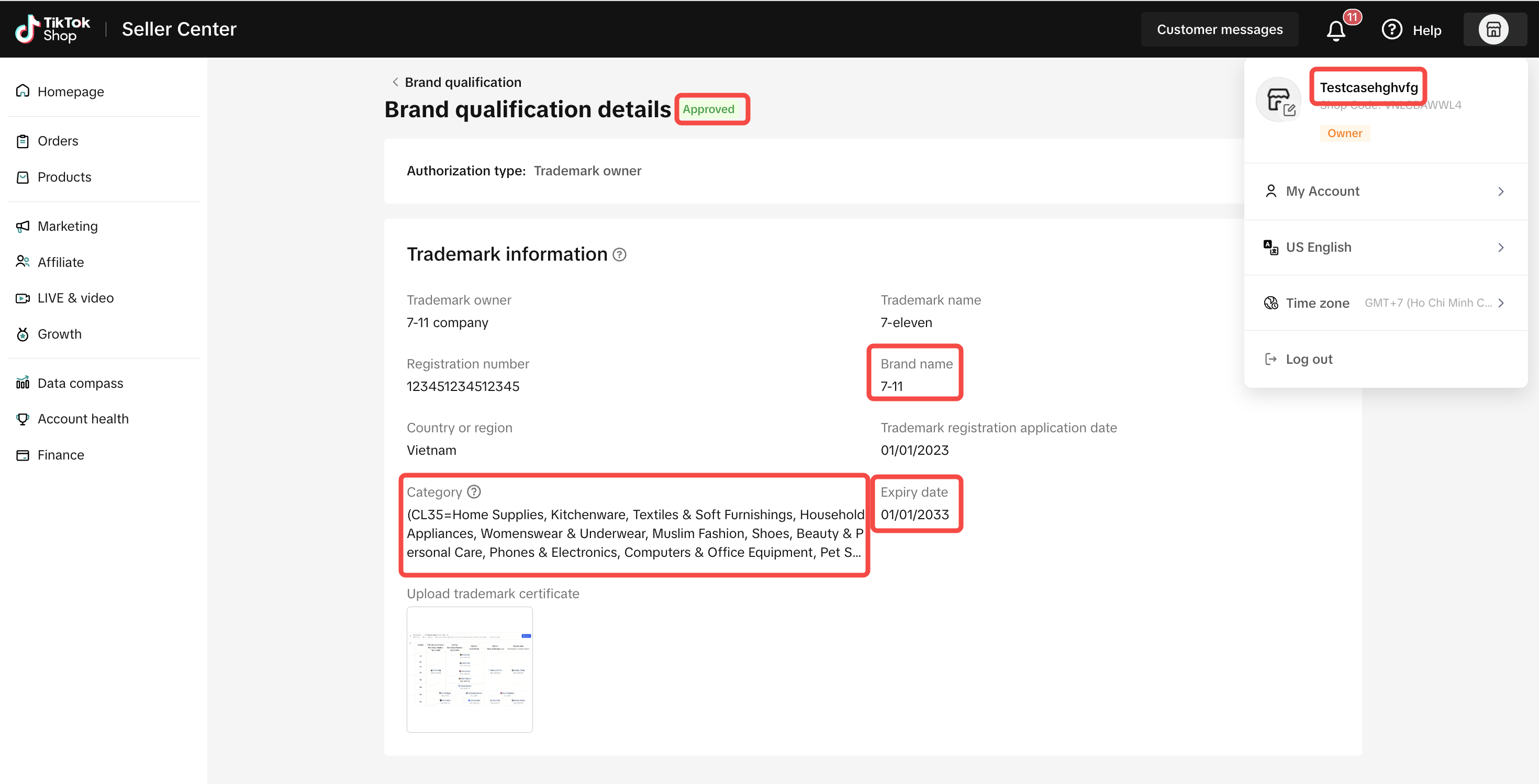 以下页面的品牌资质截图:商家中心 > 我的账号 > 账号设置 > 资质中心 > 品牌资质 > 品牌资质详情。文件中应包括以下信息: