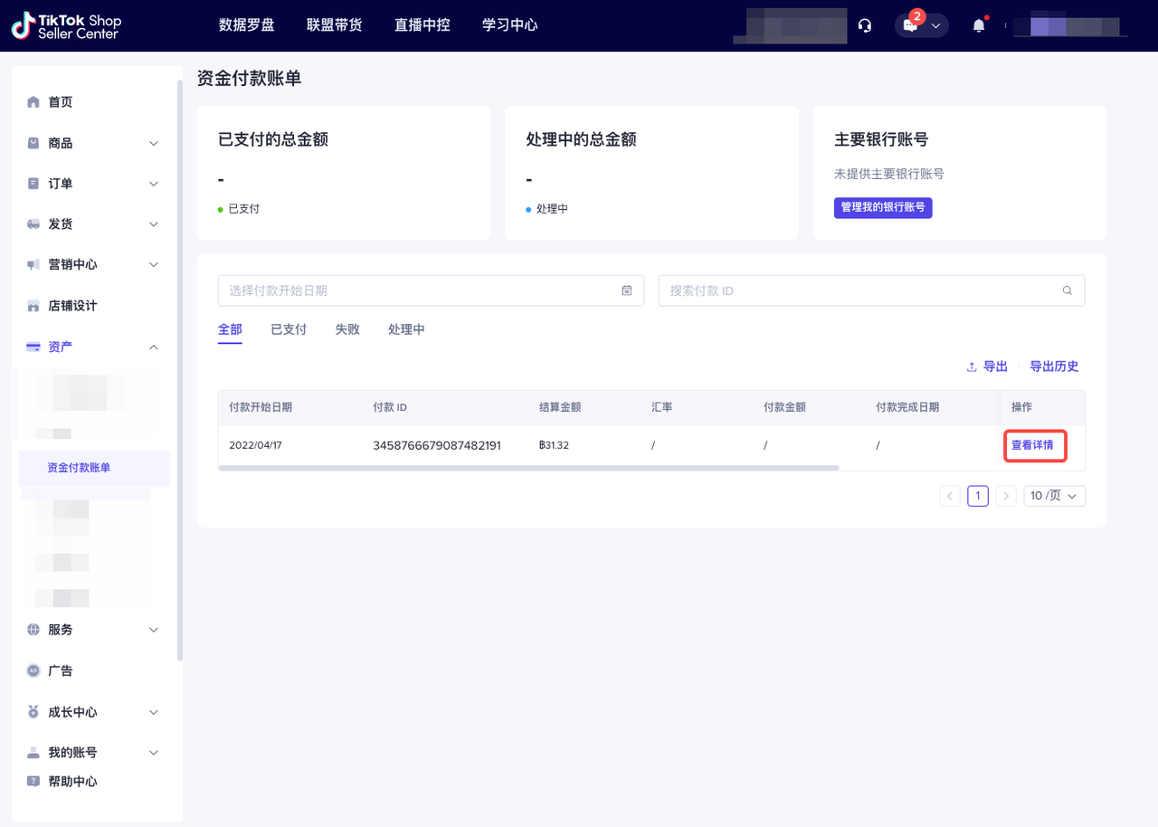 如果您的账户余额为正,并且您在卖家中心为您的银行账户输入了有效信息,TikTok Shop将向您的收款账户发起转账。